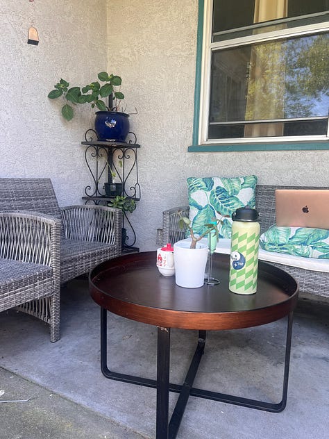My Garden! I planted some potatoes 3 months ago and they are sprouting and looking so good! I am excited to harvest them. My herbs are thriving and I have also added some green onions! It is nice to grow my own food and learn from mother nature. It is nice to be able to sit outside have my morning tea, get some writing done, and tend to my plant babies.